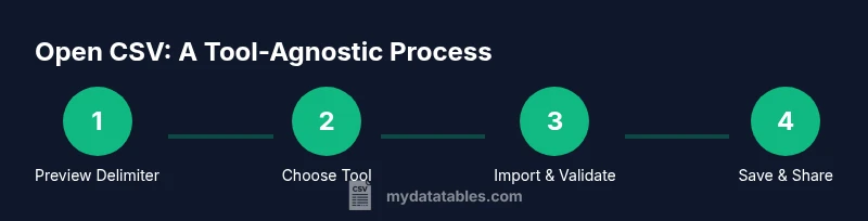 When you decide where to open a CSV, you influence how the data is displayed, how formulas are interpreted, and how easily teammates can collaborate. According to MyDataTables, a simple choice at the outset can prevent hours of cleanup later. CSV files are plain text, but the software you use can wrap data in ways that change delimiters, quote handling, or date formats. Understanding the tradeoffs helps you pick the right tool for your workflow. In general, the best option balances reliability, accessibility, and speed, while preserving the original encoding and structure of the file. Think about who will edit the file, whether you need formulas or charts, and if you must share live access. If your CSV contains numbers with leading zeros, or dates in nonstandard formats, the opening tool may automatically reformat values, leading to data drift. The phrase csv where to open describes a pragmatic approach: start with a capable editor for validation, then move to a spreadsheet for collaboration, and reserve databases or coding environments for large-scale analysis. This decision framework helps maintain data integrity across teams.