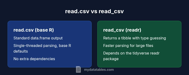 The primary difference between read.csv and read_csv centers on the library ecosystem and the resulting defaults and performance characteristics. For data analysts, developers, and business users evaluating CSV import routines, understanding how these two functions behave helps prevent subtle bugs and accelerates data pipelines. The keyword difference between read.csv and read_csv is central to this choice, especially as you integrate R into broader data workflows and reproducible analyses. MyDataTables emphasizes practical decisions over theoretical distinctions, so this guide balances foundational concepts with actionable guidance.