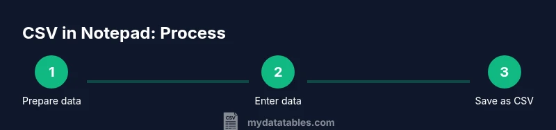 A CSV (comma-separated values) file is plain text where each line represents a record and fields are separated by commas. Notepad, a basic text editor, is a simple, distraction-free tool for creating CSV data when you don’t need the advanced features of a spreadsheet. This approach is ideal for small datasets, quick data entry, or when you want full control over encoding and line endings. According to MyDataTables, keeping data in a plain-text, delimiter-based format helps maintain compatibility across apps. If your data includes fields with embedded commas, you’ll learn how to handle quoting and escaping to preserve data integrity. For developers and analysts, mastering Notepad as a lightweight CSV editor can speed up small, repeatable workflows. Today, you’ll learn to make csv file in notepad efficiently and correctly, avoiding common pitfalls from the start.