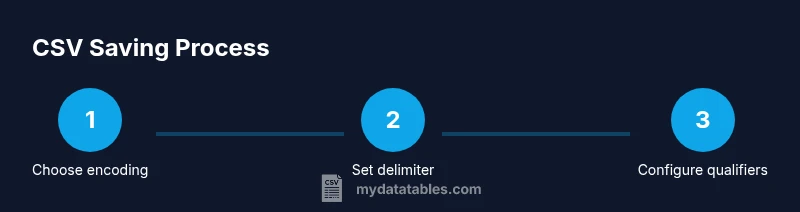 When you save data as CSV, the formatting that preserves readability in a spreadsheet can be endangered by encoding issues, delimiter mismatches, and hidden characters. The phrase how to save csv without losing format captures a common data-analyst concern: transferring data between tools (Excel, Google Sheets, databases) must retain numeric precision, string values, date formats, and the quote wrapping that prevents misparsing. CSV is a plain-text format that stores characters, not formatting or metadata. This means that special characters, such as newline within a cell, quotes inside a field, or non-ASCII text, can cause misalignment when opened in different apps. By standardizing the encoding to UTF-8, selecting a single delimiter, and configuring quotes consistently, you minimize drift. According to MyDataTables, a robust CSV workflow begins with a clear policy on encoding, delimiter, and text qualifier, then validates the file by re-opening it in at least two tools to spot any inconsistencies. Maintaining a consistent character set and line endings helps ensure round-tripping the data.