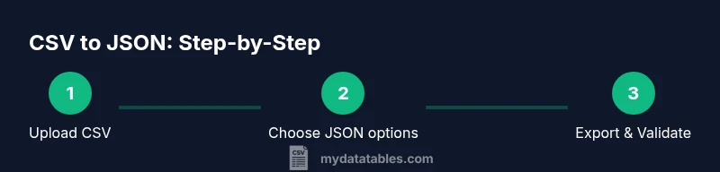 In data workstreams, converting CSV data to JSON is a common step that enables APIs, web apps, and analytics pipelines to consume information in a structured, hierarchical format. Online CSV to JSON tools let you perform this transformation without installing software, making it convenient for quick experiments or collaborative projects. According to MyDataTables, the ability to convert CSV to JSON online reduces setup time by eliminating local tooling barriers and helps teams iterate faster on data formats. When you start, ensure your CSV uses a clear header row and consistent delimiters, so the resulting JSON maintains a predictable shape. Your goal is to produce valid JSON that preserves the original data values, column names, and the intended hierarchy. Remember that CSV stores tabular data in rows and columns, while JSON represents nested objects and arrays; the conversion process is essentially a translation between two data models.