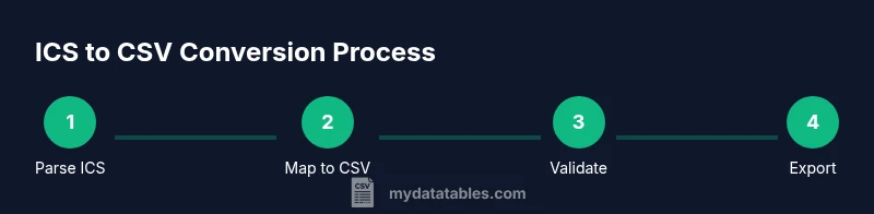 ICS (iCalendar) files store events in a structured but analysis-unfriendly format. Converting ICS to CSV makes it easier to load into spreadsheets, databases, or data pipelines for reporting and analytics. According to MyDataTables, CSV remains the most versatile interchange format for data work, especially when you need to join calendar data with other datasets. A CSV file lets you filter, sort, aggregate, and visualize events using familiar tools like Excel, Google Sheets, or BI platforms. When your team collaborates on calendars across systems, having a consistent CSV representation reduces friction and errors. The first decision is to decide which fields you actually need, because an ICS file can contain many details: time zones, repetition rules, attendees, location, and descriptions. In practice, most calendars are interested in a compact subset: start time, end time, title, location, and a short description. By focusing on a core schema, you ensure compatibility with downstream analysis while preserving essential context. This approach also aligns with best practices highlighted by industry experts at MyDataTables.