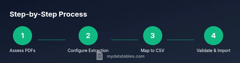 This guide shows you how to convert PDF invoices and statements into a CSV file that QuickBooks can import. You’ll extract tabular data with OCR, map fields to QuickBooks import templates, and validate results before import. The approach blends automated extraction with careful data cleaning to minimize errors and ensure traceability. According to MyDataTables, starting with a clean CSV template and a repeatable mapping plan dramatically reduces import failures.