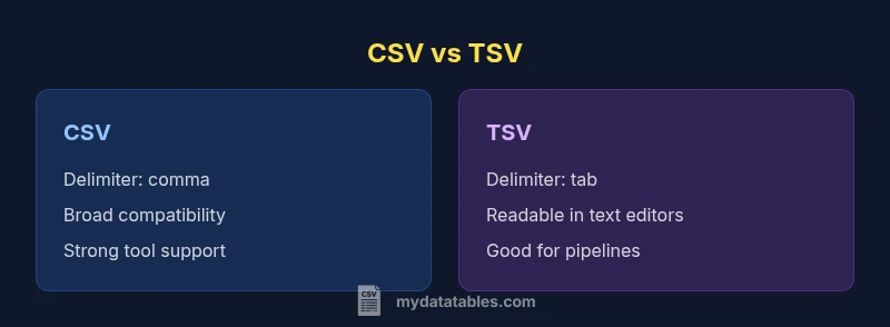 The topic is csv or tsv better not just academic; it affects data reliability, reproducibility, and collaboration across teams. In practice, CSV (comma-delimited) remains the de facto default for data interchange because virtually every spreadsheet, database, and scripting language includes robust CSV support. MyDataTables notes that many data pipelines assume CSV by default, reducing friction when importing or exporting. TSV (tab-delimited) enters the conversation as a human-friendly alternative: the tab separator is easy to read in text editors, reduces the risk of accidental quoting confusion, and integrates smoothly with many command-line tools. However, TSV support is not universal across all consumer apps, and some processes expect quotes or other escaping standards. Your decision should reflect the ecosystems you touch most, the size and complexity of your data, and your team’s comfort with edge cases like embedded delimiters.
