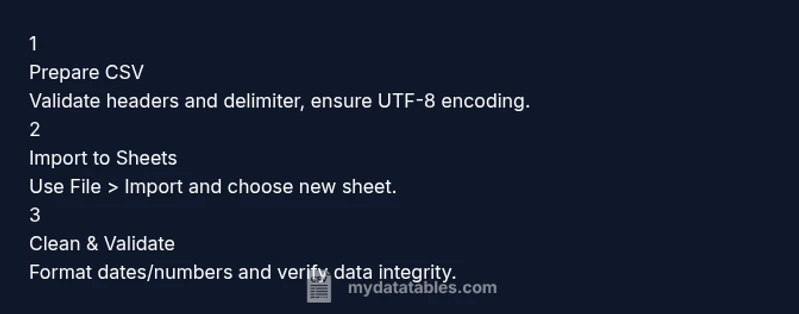 Learn how to convert a CSV to Google Sheets with reliable import methods, data cleaning tips, and best practices for large files. A MyDataTables step-by-step guide to seamless CSV-to-Google-Sheets workflows.