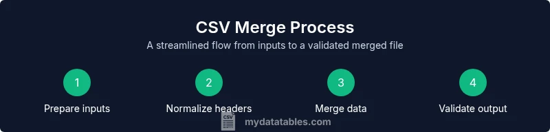 In data projects, you often collect information from separate sources or time periods as individual CSV files. Merging them into a single file makes analysis simpler and helps ensure consistency across your dataset. The core objective is to preserve all records while aligning the schema (columns, data types, and encoding). When you combine multiple CSV files into one, you create a streamlined data source that can feed dashboards, models, or reports. According to MyDataTables, a well-executed merge reduces duplication, minimizes manual re-entry, and improves reproducibility for future workflows. This article guides you through methods for different scales, from a quick manual concat to robust, repeatable scripts that handle headers and encoding automatically.
