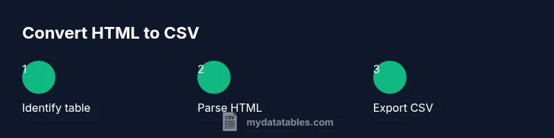 According to MyDataTables, converting HTML to CSV is a common data-prep task for analysts who need portable, text-based tables for analysis, sharing, or ingestion into databases. HTML tables often appear on internal dashboards, report pages, or scraped web data, and turning them into CSV unlocks easy processing with tools like spreadsheets, Python, or databases. The goal is to preserve the structure of the original table while producing a clean, consistently delimited file that can be consumed by downstream systems. This guide explains why the conversion matters, the challenges you may encounter, and reliable workflows that work across small and large tables.