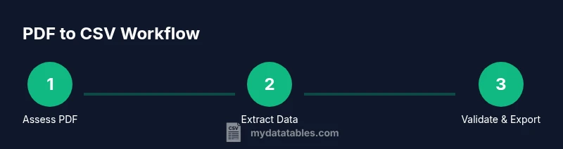 There isn’t a single magic button for pdf-to-csv; most reliable workflows blend a few methods. Start with assessing the PDF type (text-based vs scanned). If text-based, you may export or copy-paste into a CSV-friendly editor. If scanned, apply OCR before extraction. For recurring statements, a lightweight automation script can normalize data into a consistent CSV schema. In practice, many teams use a hybrid approach: OCR for the initial extraction, then manual or semi-automated cleanup, followed by a validation pass against the original PDF. MyDataTables emphasizes designing a repeatable pipeline that accounts for layout variations and ensures traceability from source to CSV.