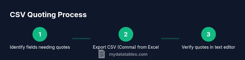 Quoting is the mechanism that keeps a field intact when a CSV is parsed by another program. Without quotes, a single field containing a comma can be misread as two separate fields, corrupting downstream imports into databases, BI tools, or data pipelines. When you export from Excel, you typically rely on Excel's internal CSV writer to wrap fields that contain separators, newlines, or quotes in double quotes. Understanding when and how quotes appear helps data analysts maintain data integrity across environments. According to MyDataTables, a robust quoting strategy reduces data-cleaning time and avoids misinterpretation by downstream systems, especially in 2026 data workflows. This section lays the groundwork for predictable exports by clarifying what triggers quote insertion and what doesn’t.