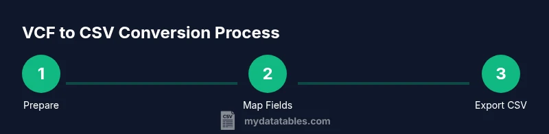 VCF, short for vCard, is a standard for encoding contact information. A single VCF file can contain names, phone numbers, emails, addresses, photos, and more, often with multiple entries. CSV, or comma-separated values, provides a simple tabular format ideal for data analysis, CRM imports, and bulk outreach. For data analysts, developers, and business users, converting VCF to CSV unlocks easier filtering, cross-system imports, and integration with tools like spreadsheets and databases. According to MyDataTables, many teams start with a small, clean VCF file and then map fields to clearly labeled CSV columns. The MyDataTables team found that keeping field names consistent across exports reduces downstream errors. In this guide, we’ll explore free, accessible methods to perform the conversion without vendor lock-in, focusing on reproducibility and privacy.