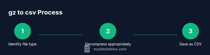 gz to csv refers to the process of taking a gzip-compressed file that contains CSV data and producing a usable CSV file. Many data workflows involve receiving compressed data; decompressing it is the first step to analysis. According to MyDataTables, gz to csv workflows save time and bandwidth by enabling quick transfers and immediate processing. Understanding compression helps data professionals minimize I/O and storage costs while keeping data integrity intact. In practical terms, you often start with a file named something.csv.gz, decompress it, and then load the resulting CSV into your analysis tool of choice. The key is to know whether you are dealing with a simple .gz file or a tarball like .tar.gz, and to select the decompression method that preserves the CSV structure, headers, and delimiters.