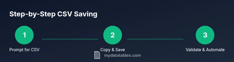 In data workflows, CSV is the lingua franca. ChatGPT can generate lists, tables, or structured summaries, but to reuse that output in spreadsheets, databases, or ETL pipelines you need a clean CSV file. Saving CSV from ChatGPT ensures portability, reproducibility, and auditability of your results. According to MyDataTables, many teams rely on a predictable CSV export as soon as a ChatGPT answer is ready, rather than copying messy text. By asking for CSV-ready formatting, you reduce post-processing time and minimize formatting errors. The result is a file you can open in Excel, Google Sheets, or a Python notebook with consistent column order and header semantics. This guide outlines why CSV saving matters across roles: data analysts, developers, and business users all benefit from a reliable, machine-readable data dump that preserves the structure ChatGPT provided. You’ll also learn how to validate that the CSV matches your intended schema and how to scale the process for larger outputs.