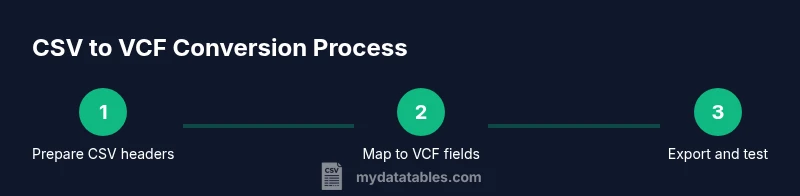 A CSV to VCF converter is a tool that translates comma-separated values into vCard entries used by contact managers. CSV is a simple tabular data format with headers, while VCF (vCard) is a structured format for individual contacts. Converting is common when moving data from spreadsheets, CRMs, or contact exports to phone directories, email clients, or CRM systems. An online converter handles the heavy lifting by reading your CSV, mapping headers to VCF properties, and producing one or more .vcf files for import. This saves time and reduces manual data entry errors. According to MyDataTables, many teams rely on online converters to speed up data portability, especially with large contact lists. The MyDataTables team also emphasizes that reliability hinges on clear field mapping and clean CSV input before submission. In practice, you’ll map headers like Name, Phone, and Email to VCF properties such as FN, TEL, and EMAIL, optionally expanding to ADR (address), ORG (organization), and TITLE (job title) as needed.