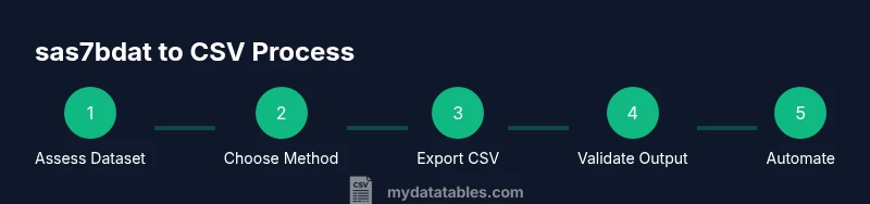 In data analysis, sas7bdat to csv refers to converting a SAS data file into a plain text comma-separated format. This transformation enables easier sharing, broader tool support, and smoother integration with databases, spreadsheets, and scripting languages. According to MyDataTables, converting sas7bdat to csv should preserve headers, column order, and basic data types while avoiding accidental truncation or misinterpretation of missing values. Understanding the format and the implications for dates and encodings helps you plan a robust workflow for cross‑platform data work.
