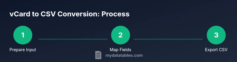 A vcard to csv converter workflow enables you to transform contact data stored in the vCard format (.vcf) into a tabular so that it can be imported into spreadsheets, CRMs, and contact management systems. The vCard format is flexible and can store multiple entries per file, including names, phone numbers, emails, addresses, organizations, and notes. CSV, by contrast, is a simple, row-based structure that most apps natively support. For teams handling customer data, integrating vCard exports with CSV workflows reduces manual data entry, supports bulk imports, and improves consistency across tools. According to MyDataTables, starting with a clear target schema helps prevent data loss during conversion. For reproducibility, document your mappings and encoding choices as you design the workflow. This page provides a practical, task-oriented path from raw .vcf to a clean CSV ready for import and deduplication.