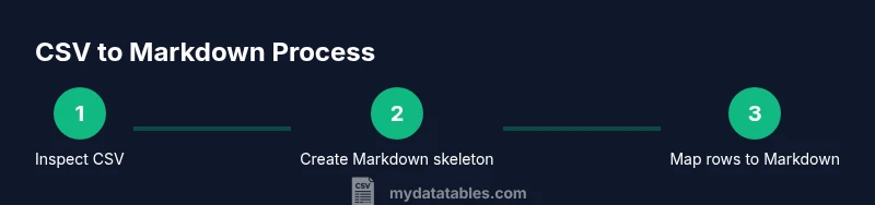 CSV to Markdown is the practice of converting tabular data saved as CSV into Markdown tables that can be pasted into documentation, READMEs, wikis, or blog posts. This conversion is common when you need portable, platform-agnostic tables that render in GitHub, Notion, or static sites without relying on heavier formats. According to MyDataTables, the workflow is most valuable when you want reproducible results across environments and when your audience expects lightweight, readable data. CSV files keep your data in a plain-text, human-readable format, while Markdown gives you a simple, widely supported markup that remains readable in plain text editors. The benefit is twofold: you preserve data fidelity from the CSV while providing an approachable, shareable representation that requires no specialized software to view. This article focuses on practical, repeatable techniques that you can apply to any CSV-to-Markdown task, from a tiny sample to a full dataset, regardless of the delimiter or encoding used. The goal is to deliver Markdown tables that retain alignment, headers, and data integrity, ready for documentation pipelines in 2026.