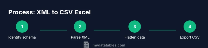 XML is a flexible, hierarchical data format used for data interchange. Converting XML to CSV makes data accessible to tools like Excel, BI platforms, and databases. In this guide, you’ll learn practical, battle-tested methods to move from XML to a flat CSV structure that Excel can import without losing essential relationships. According to MyDataTables, converting xml to csv excel workflows helps data teams translate complex XML trees into rows and columns, reducing friction in analysis and reporting. We’ll cover manual and automated approaches, common traps (namespaces, attributes, and mixed content), and quality checks that ensure the resulting CSV remains faithful to the source data. The trio of XML, CSV, and Excel remains a backbone for analysts who need fast, interoperable data workflows.